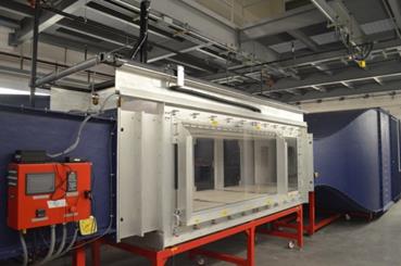 equipped with 7.5 HP motor powering the fan. The wind tunnel is a closed-loop